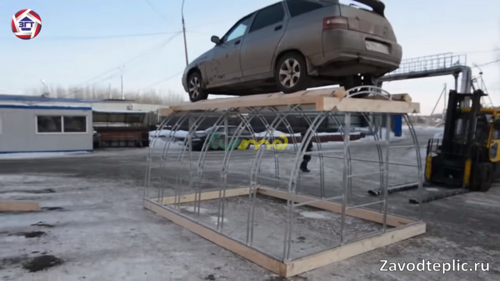 obr.: Konštrukcia skleníka RUBY LUX zaťažená motorovým vozidlom úspešne a bez problémov odoláva hmotnosti viac ako 1000kg: