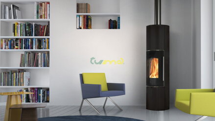 Kachle na drevo s možnosťou rozvodu teplého vzduchu. Široké vertikálne a okrúhle sklo pre zvýraznenie plameňa