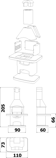 - ku krbu je možnosť doobjednať pre navýšenie komína ďaľší komínový nadstavec čím dosiahneme zvýšenie krbu o 40 cm pre účel prechodu komínového telesa cez strechu záhradného altánku.